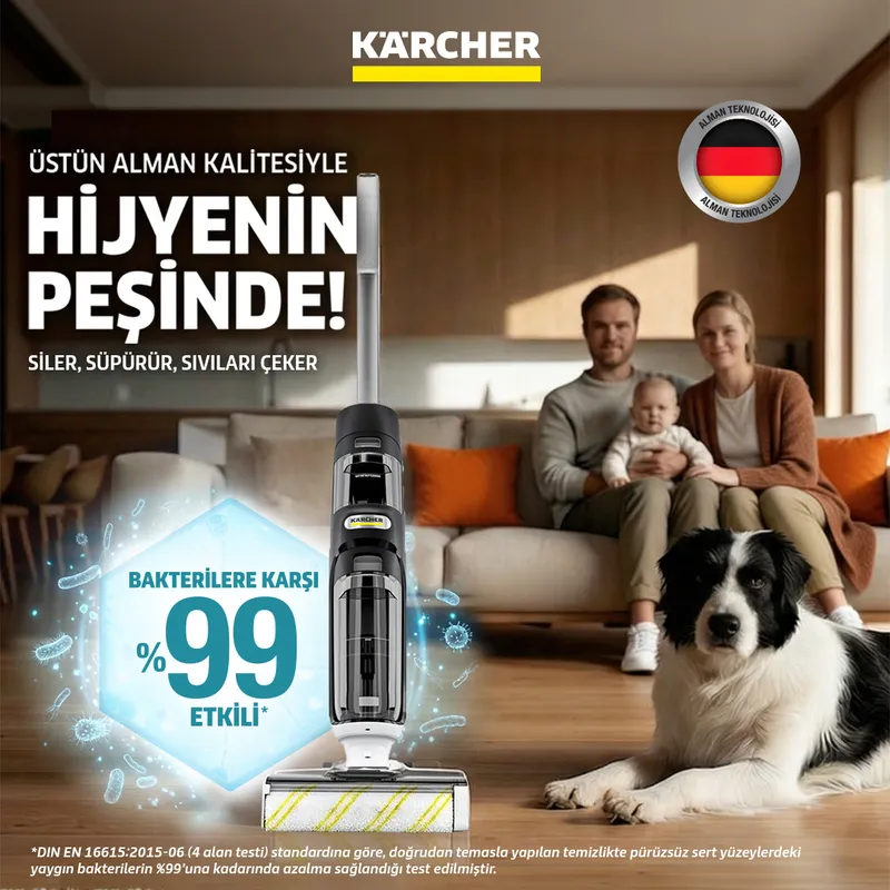 Gerçek anlamda temiz ve hijyenik bir evin keyfini çıkarın: Kärcher ıslak kuru elektrikli süpürgeler, laboratuvar testleriyle %99'a kadar bakteri** giderdiği kanıtlanmış üstün Hygienic!Spin teknolojisine sahiptir. Dakikada 500'e kadar silindir dönüşü ve her zaman zemine temiz su uygulayan 2 tanklı sistemle donatılmıştır. Kir yayılmaz – sadece tertemiz, iz bırakmayan parlak zeminler elde edilir.