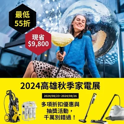展會期間(8/23~8/26),德國凱馳頂級白色家電系列優惠組合最高下殺55折,還有多項熱賣商品現場限時優惠價。