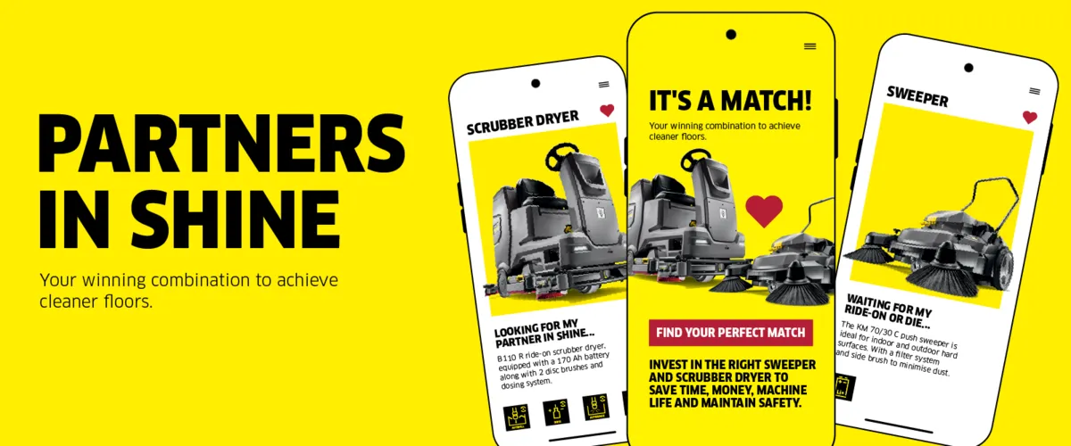 When looking for the right cleaning solution, look for a total solution. Using a sweeper followed by a scrubber dryer ensures maximum results with minimal mess. To help you achieve cleaner floors, find your perfect match to save time, money, protect machine life, and maintain a safe work environment.